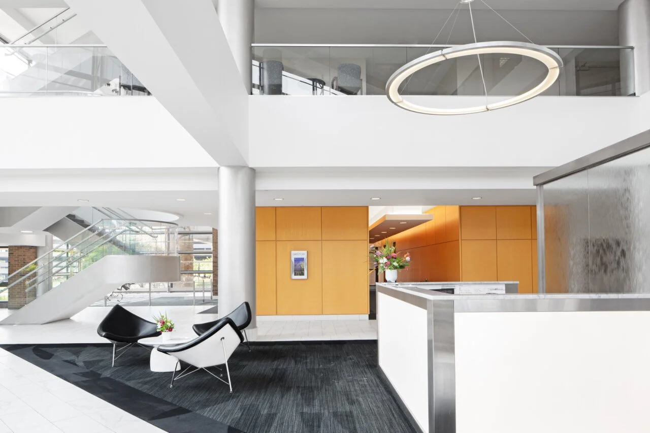 This corporate office space had a nice glow-up with recent renovations. Staging some cozier and more natural elements helps to bring the space to life.